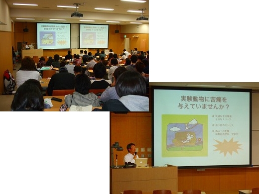 本年度は、5月14日(金)の4時間目に、医学研究院実験動物学分野教授の小野先生(全学の動物実験主任者)から、下記のシラバス記載の内容につき、詳しく説明がありました。研究室配属/早期研究室体験実習ばかりでなく、生命科学科の学生で卒業研究において動物実験に従事する者には、必須の講習です。 一般学習目標(GIO)