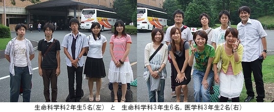 例年に比べてかなり遅れて、まだ梅雨が明けきれない蒸し暑い日々が続く中で、阿蘇リゾートグランヴィリオホテルを会場に高原の涼しい環境で開催された第33回阿蘇シンポジウムに、医学部生命科学科2年生5名と3年生6名が同じ医学科3年生2名と一緒に合計13名で参加しました。昭和52年から(財)化学及び血清治療法研究所が阿蘇で毎年夏に開催するほぼクローズドのシンポジウムは、微生物学、免疫学を中心とした基礎および臨床研究に関する専門の研究者が研究発表や討論を行うもので、その質の高さは国内外の注目を集めています。今年は、平成21年7月31日から8月1日の一泊二日の日程で、九州大学の医学研究院長/医学部長を務められた原田実根先生、生体防御医学研究所の所長を務められた渡邊武先生、並びに熊本大学の発生医学研究センターの山村研一教授と3名のオーガナイザーの先生のお世話で、“生命科学科のフロントランナー”をテーマに開かれました。
