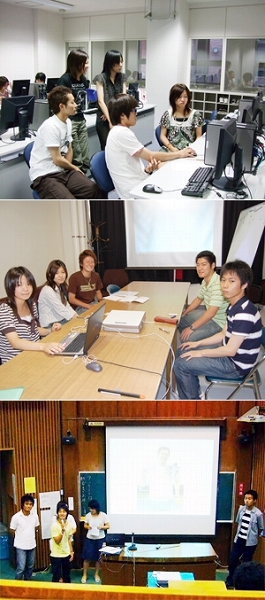 | 生命科学科1年生は、医学科の学生と共に必修科目『コアセミナー』に取り組みました。 1年次前期に行う『コアセミナー』は、日々進歩する医学を学び続けるために必要な自己学習の態度を身につけるため、それぞれの学生を担任している教員と連携し、少人数グループ学習としてPBL(Problem-based Learning、問題基盤型学習)を行うものです。 チュートリアル(tutorial)ともよばれるPBLは、テーマに関してグループディスカッションを行い、論点を明らかにし、調査やその成果のまとめを通じて、新たに生まれた疑問や論点を展開して取組んでいく学習方法です。各学生グループと教員により取り組むテーマを決め、5週間(週に1回、終日)に渡り、討論を続け、最終日に成果発表会を行います(写真はチュートリアル作業中並びに成果発表会の様子)。 学生はこの授業を通じ、情報検索能力や情報処理能力、プレゼンテーション能力を高めます。教員との報告・連絡・相談を行いながら、プレゼンテーション用のPowerPointファイルを作成することで、チームでプロジェクトを進めていく力も養います |