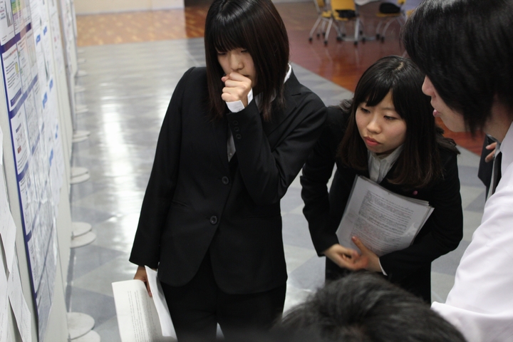 繰り返し練習をした成果が出ており、ほとんどの学生が時間通りに明快に発表ができていました。発表当日は直接研究をご指導いただいた教室の先生にも参加していただき、会場では英語による活発な質疑が行われ、学生は英語での返答に苦労しながらも勉強した成果を賢明に説明しようと努力していました。全てのプレゼンテーションを終えた後、投票が行われベストプレゼンテーション賞に本名さんが、ベストポスター賞に湊さんが選ばれました。