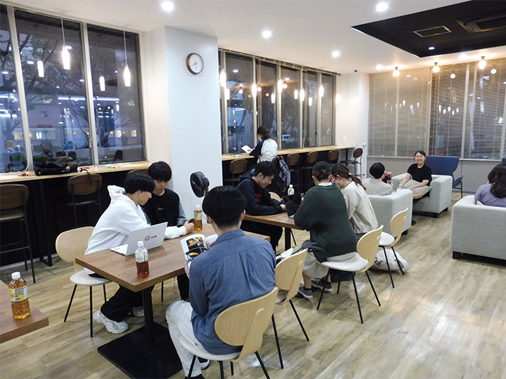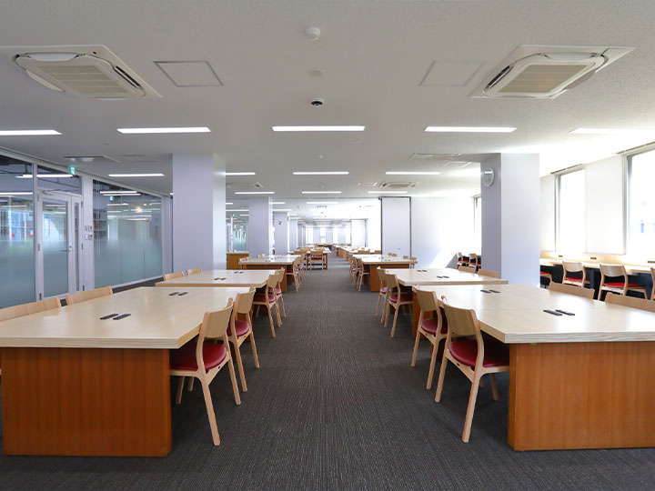 館内では、会話しながら学習ができるアクティブラーニングルーム、快適に長時間学習できる広々とした閲覧室、