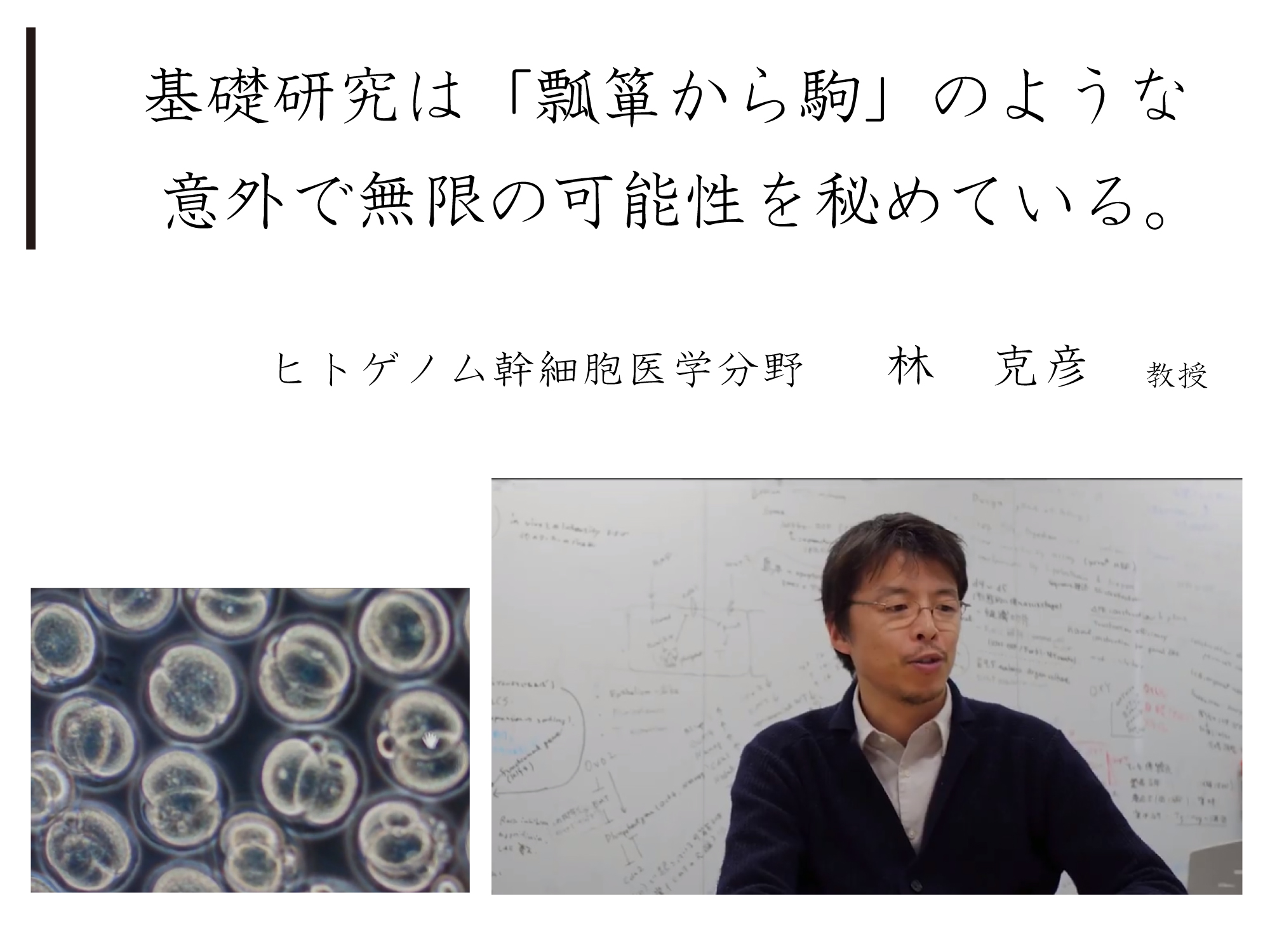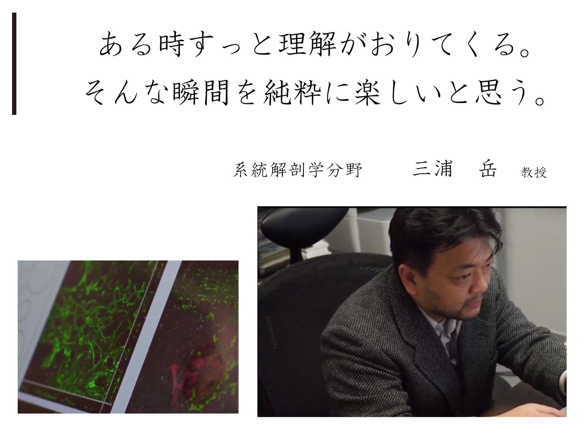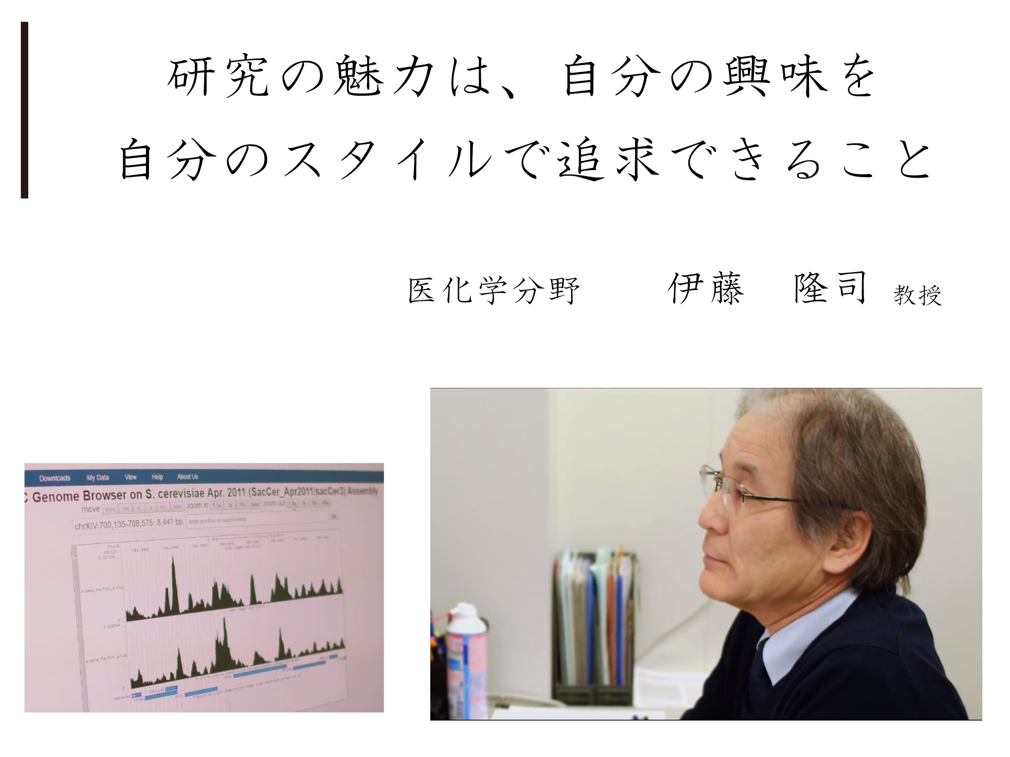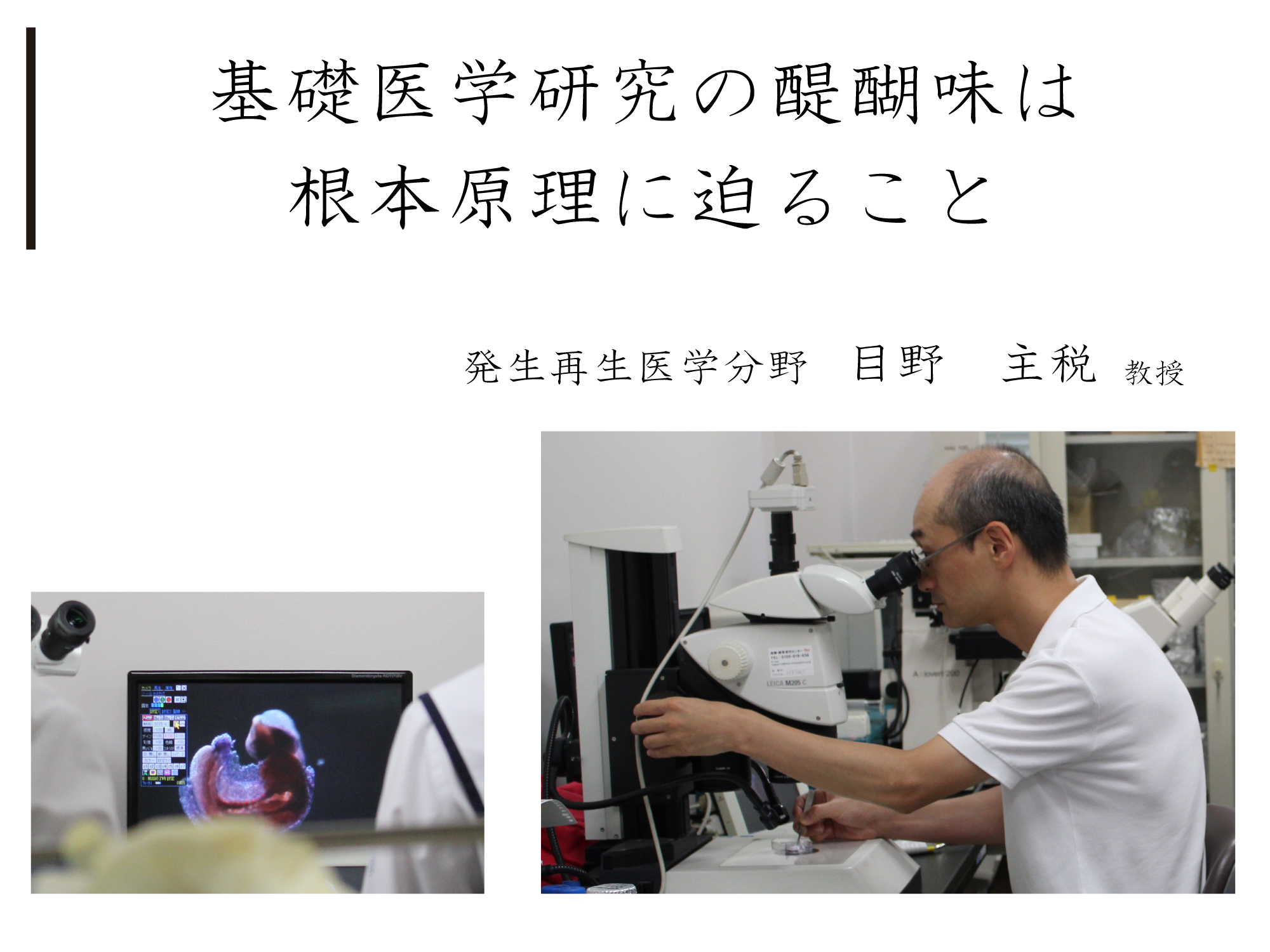 自分の心と向き合い、心の声をよく聞いて、もし興味を感じたら、ぜひ基礎医学研究者の感動を味わってください。