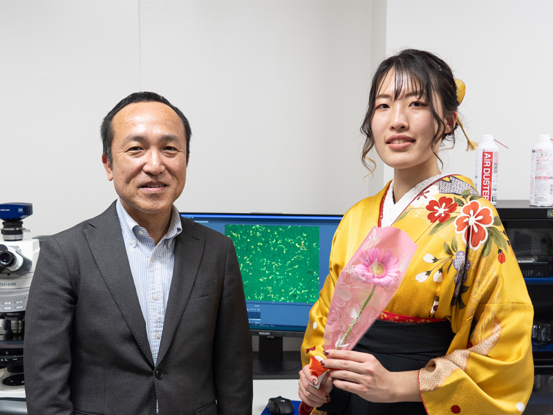 研究室に恵まれたので、修士課程も同じ神野研究室(神経解剖学分野)に行こうと思っています。修士課程の間に論文が出せるぐらいには頑張りたいです。その後、博士課程に進むか就職するかはまだ決めかねていますが、研究者になるのもいいな、と思っています。今は研究を志す若い人への支援も比較的充実してきており、例えば海外でポストドクターをするなど、キャリアパスの様々な可能性自体は開かれているように思います。生命科学科の卒業生で、本学に職を得ている先輩方もいらっしゃいます。