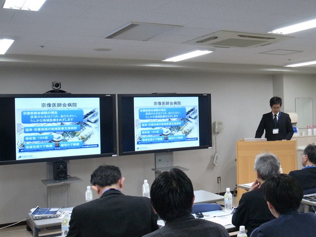 今年度は3月10日(土)に、九州大学病院ウエストウイング棟3階 スキルトレーニングセンターにて開催しました。住本医学研究院長の開会挨拶に引き続き、神戸大学大学院地域医療教育学部門 特命教授 岡山雅信先生より「地域医療実習プログラムの質を高めるための方略」と題してご講演をいただきました。その後、実習施設のうち5施設より、参加型実習に積極的に取り組んでいる部署のご報告をいただきました。最後に、今年度の各施設での参加型実習の問題点、ならびに次年度に向けての改善点について6つのグループに分かれて議論し、グループ毎に発表をしていただきました。