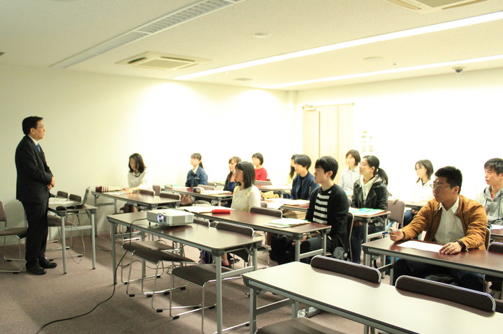 履修解説の後は、再び大ホールにおいて、医学学生係長から医学部在学中の注意事項等が、医学部同窓会から同窓会についての紹介があり、その後、グループに分かれて医学歴史館を見学し、展示品を前に医学部の歴史について説明を受けました。