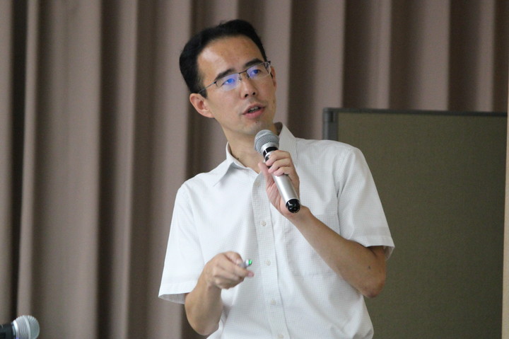 説明会では、はじめに康東天生命科学科長から、挨拶ならびに生命科学科の概要紹介がありました。康生命科学科長は、生命科学は日本の産業の柱になることを期待されていると話し、当学科の特徴ある教育システムについて説明しました。