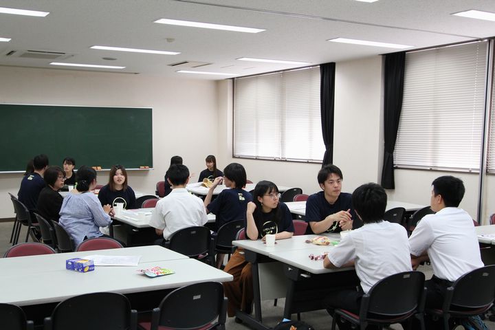 説明会の後には、希望者を対象とした「研究室訪問」と「在学生との対話」を行いました。「研究室訪問」では25の研究室を開放し、約60名の学生がグループに分かれ、生命科学科在学生の引率の元、各研究室を訪問しました。「在学生との対話」は参加者が本学科の学生と自由な会話をすることができ、受験のことや実際に入学してから思ったことなどの率直な質問がされているようでした。参加者の顔に笑顔がみられ、会場は終始和やかな雰囲気でした。