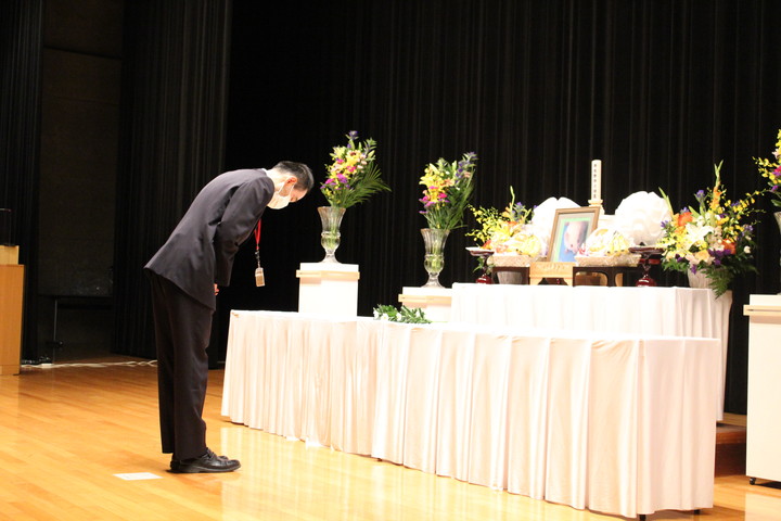 今年度は、新型コロナウイルス感染防止のため、例年より形式を簡略化し、参列者による献花のみ行う予定でした。