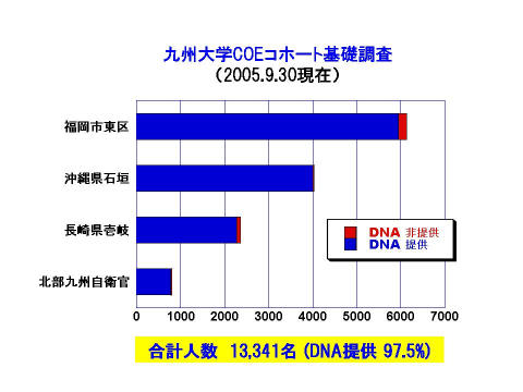 都市部、周辺部、離島部という地理的環境の違いも要因のひとつとして、住民の協力を得て福岡市東区、長崎県壱岐市、沖縄県石垣市などで、計5万人のコホートが目標だ。