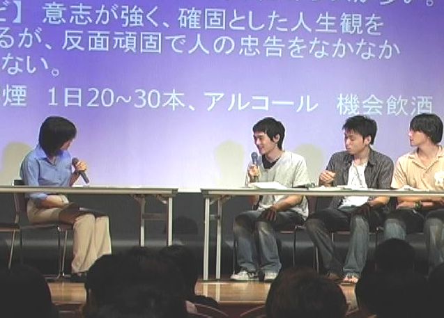 〈写真説明〉学生企画によるロールプレイ。右側の医療者役の学生たちが、左側の患者役に、乳がん告知と治療方針の説明を行い、インフォームド・コンセントの実践上の難しさと重要性を実感する。