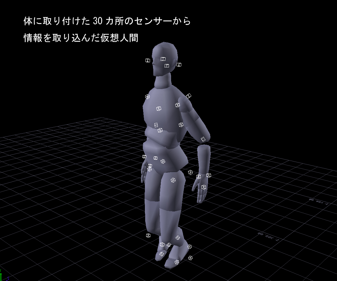 まず、3次元デジタイザで患者の全身の輪郭データをとる。これにアニメ制作などに使われるモーションキャプチャーシステムを使って、患者の独特の動きを3次元的に捉えてリアルな仮想人間として映像化する。とりわけ足の筋肉の動き(筋電図)や体の重心の変化(足圧計)などを一緒に取り込む技術に腐心し、3次元アニメを作るのに成功した。これがいわゆるデジタルヒューマンである。脳の生理機能の異常を、視覚的に捉えることができるという画期的な試みだ。