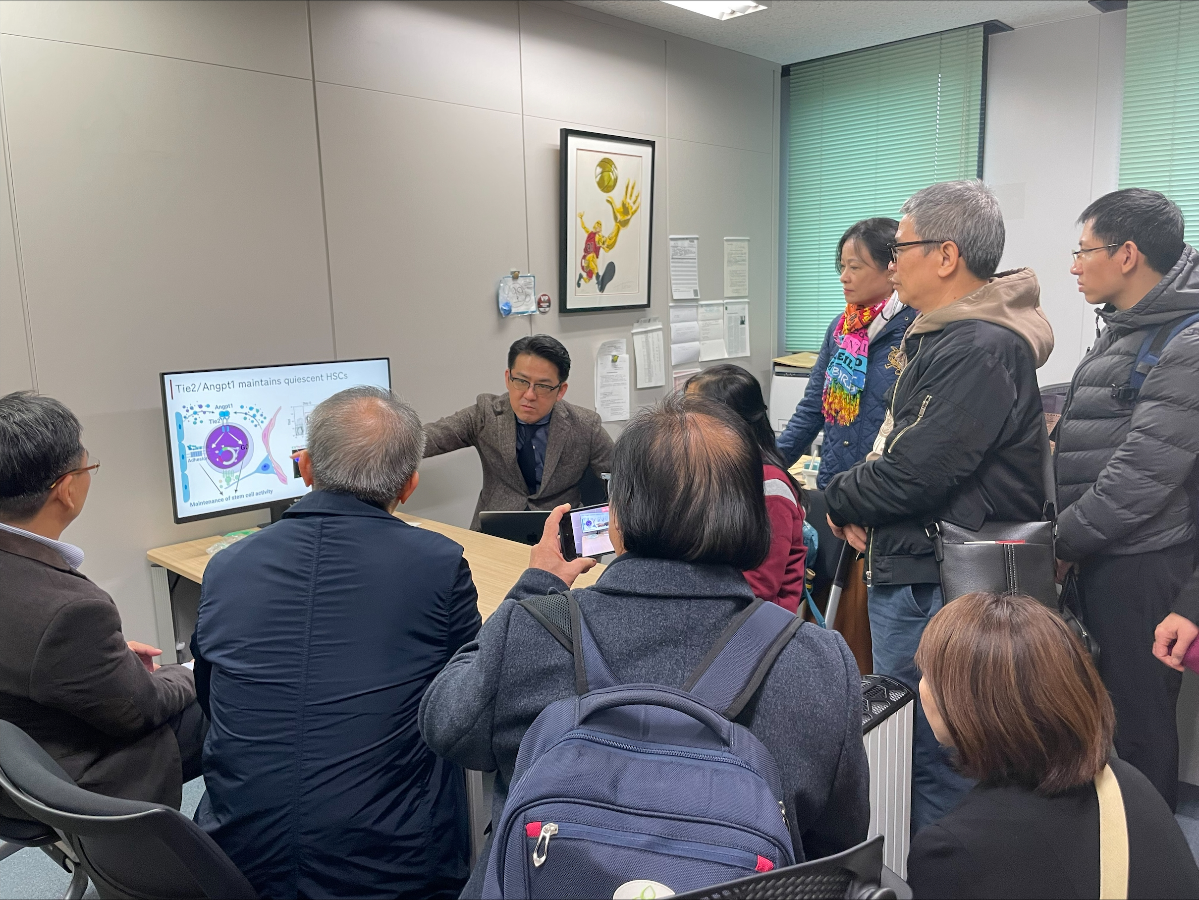表敬訪問の後は、新井教授の研究室を訪問し、再生医療に関する研究の取組について紹介を行いました。