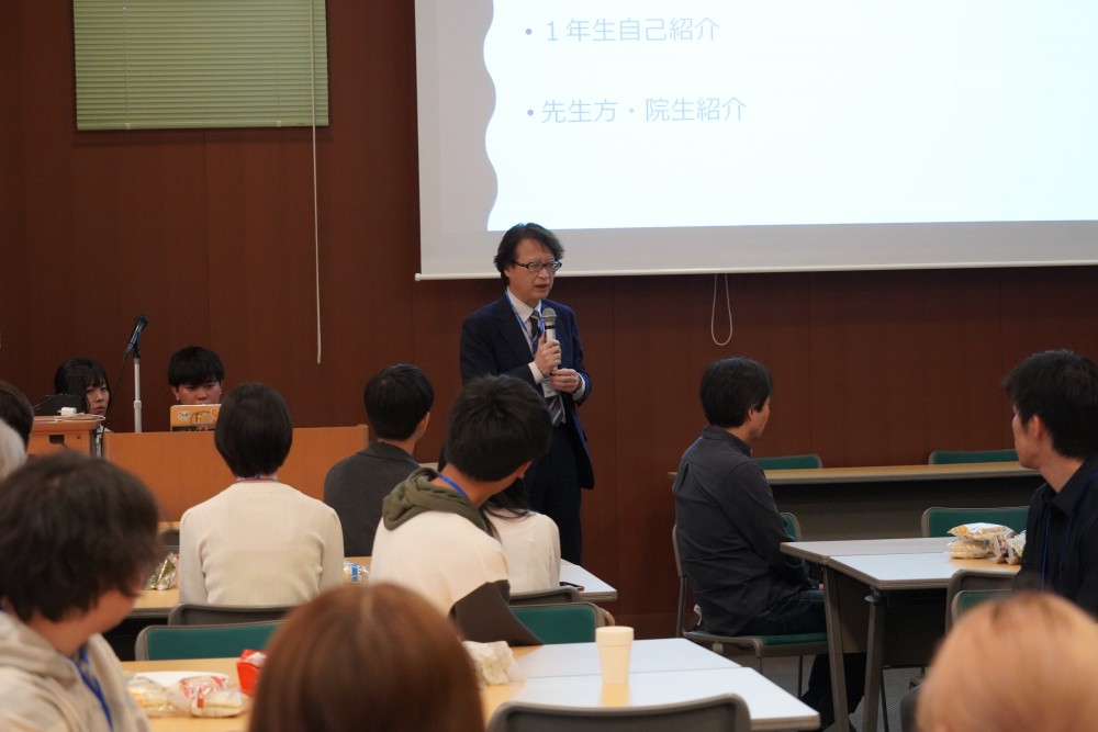 5月28日(火)の午後6時から、病院キャンパス・総合研究棟1階の105セミナー室にて、令和6年度生命科学科新入生(12名)を迎え、2年生から4年生(在学生23名)、関係教員(16名)、大学院生(3名)と昨年よりかなり多くの先生方の参加があった中懇親会を開催しました。