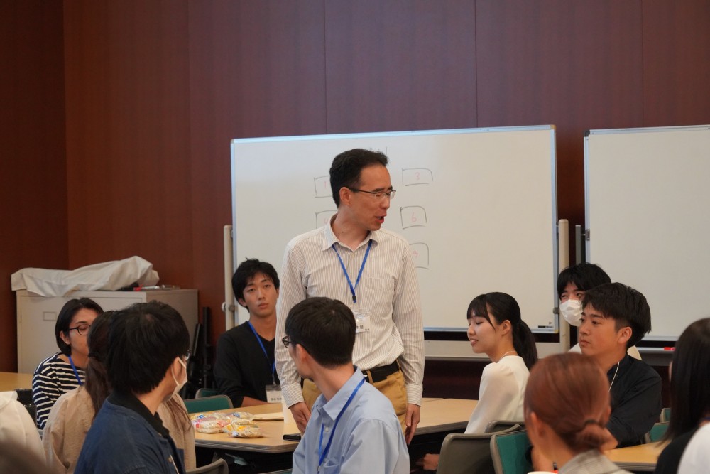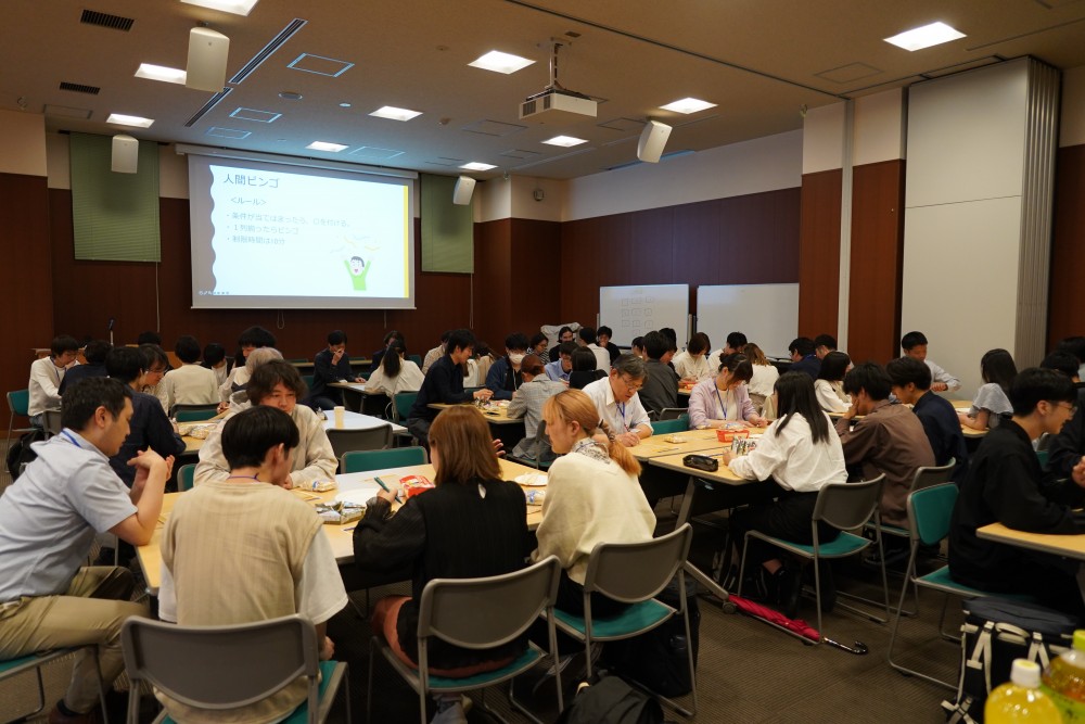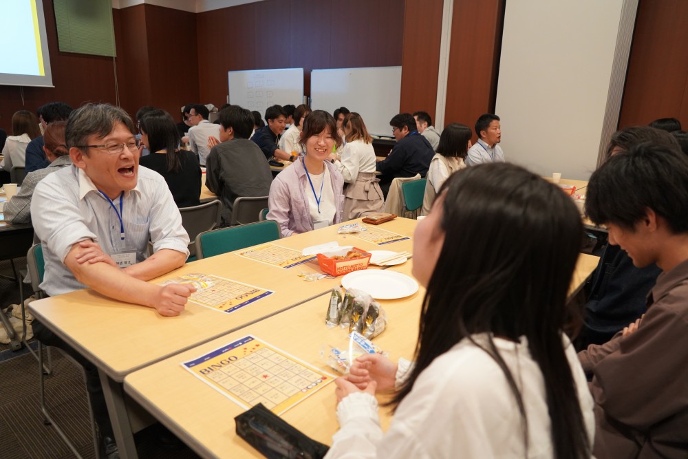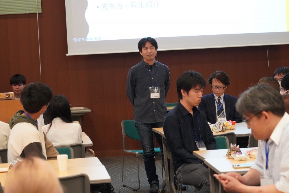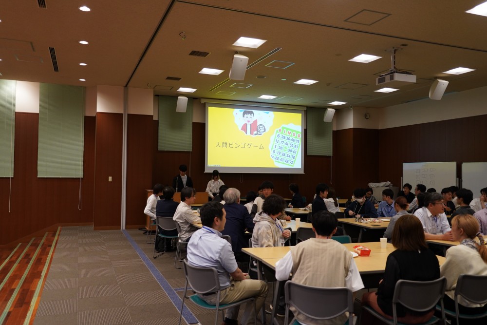 会の中頃で写真撮影を行った後、もとの班から自由に行き来し、更なる交流の時間が持たれました。軽食もとりながら、終始、和やかな雰囲気の交流となりました。新入生達も先輩や教員と話すことができ、とても良い刺激になっているようでした。第一部閉会後、学生のみの交流会・レクレーションも行われ、学年をこえた仲を更に深めることができたようです。