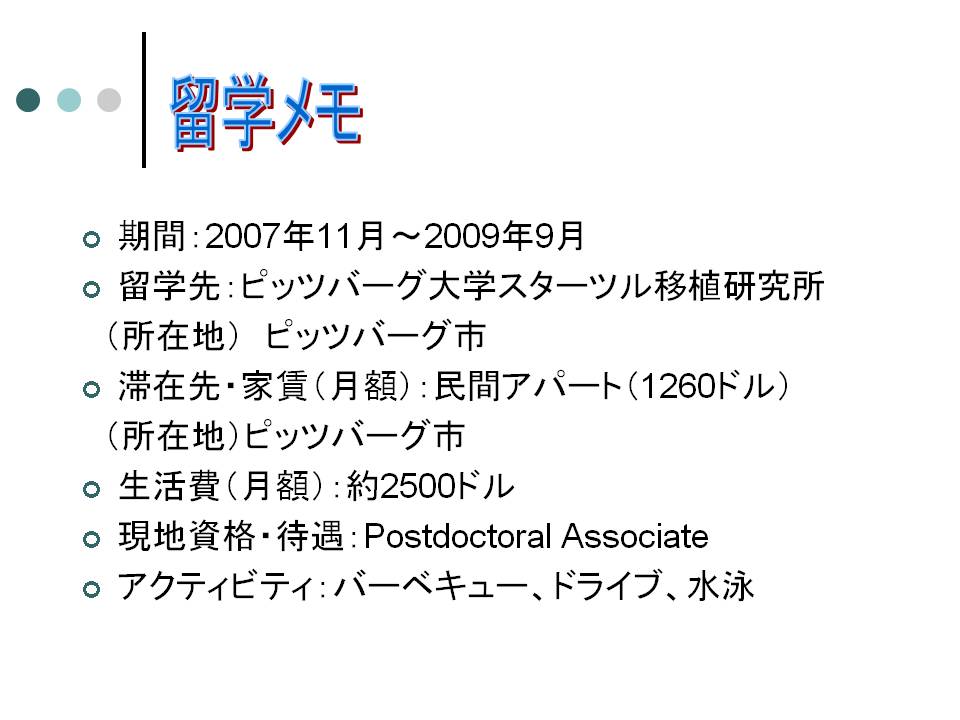 動物を使った移植手術の最中。幾度と無く自分の一挙手一投足に向けて発せられ、胸に突き刺さる言葉。生命と直結する「知、技、心」が凝縮した現場に走る緊張感。どれほど怒鳴られ、身の縮む思いをしたことか。ピッツバーグ大学(University of Pittsburgh)スターツル移植研究所(Thomas E. Starzl Transplantation Institute )の厳しい指導方針は、スターツル(Dr.Starzl)一門の伝統でもあった。