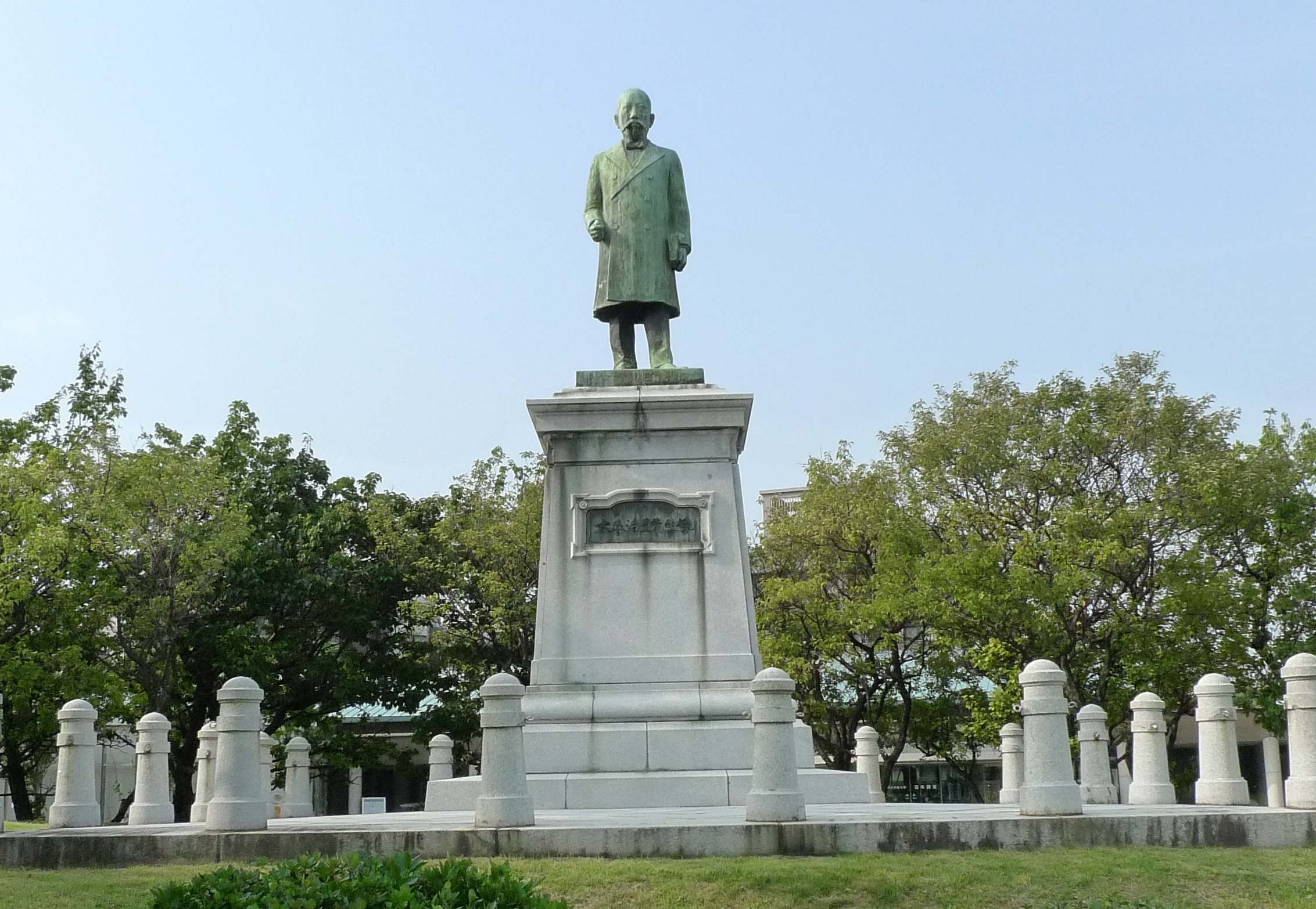九大病院は平成21年9月に外来診療棟が完成、移転してすっかり新築工事が完了する。その一角に、100有余年の変遷を回顧するかのようにたたずむ大森治豊像がある。山形県出身で明治36年、九州大学の前身となる福岡医科大学の初代学長・附属病院長を務めた。明治12年、東京大学医学部を第1回生として卒業後、福岡医学校に赴任、その後改組された県立福岡病院の院長、さらにこの病院を母体にした京都帝国大学福岡医科大学の設立に奔走して、今日の九州大学発展への礎を築いた。明治42年、この病院で61歳の生涯を閉じた大森学長の遺品や関係資料約250点が、遺族から寄贈されて九州大学の大学文書館に保存されている。