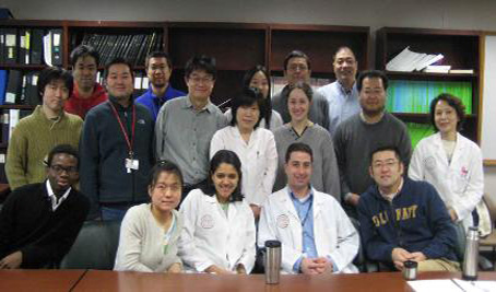 ニュージャージー州立医科歯科大学で研究仲間と。前列右端が吾郷さん。
