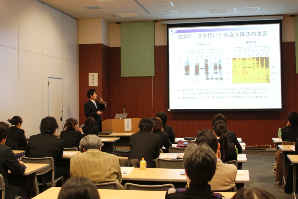 2月2日(水)9:50〜17:10に総合研究棟1階の105号室で、医学部生命科学科第一期生の卒業研究発表会が開催されました。1月から着任された医学部長の片野先生他、卒業研究の指導教員、生命科学科3年生有志等多数の参加で、学生達も引き締まった発表、質疑応答をしました。
