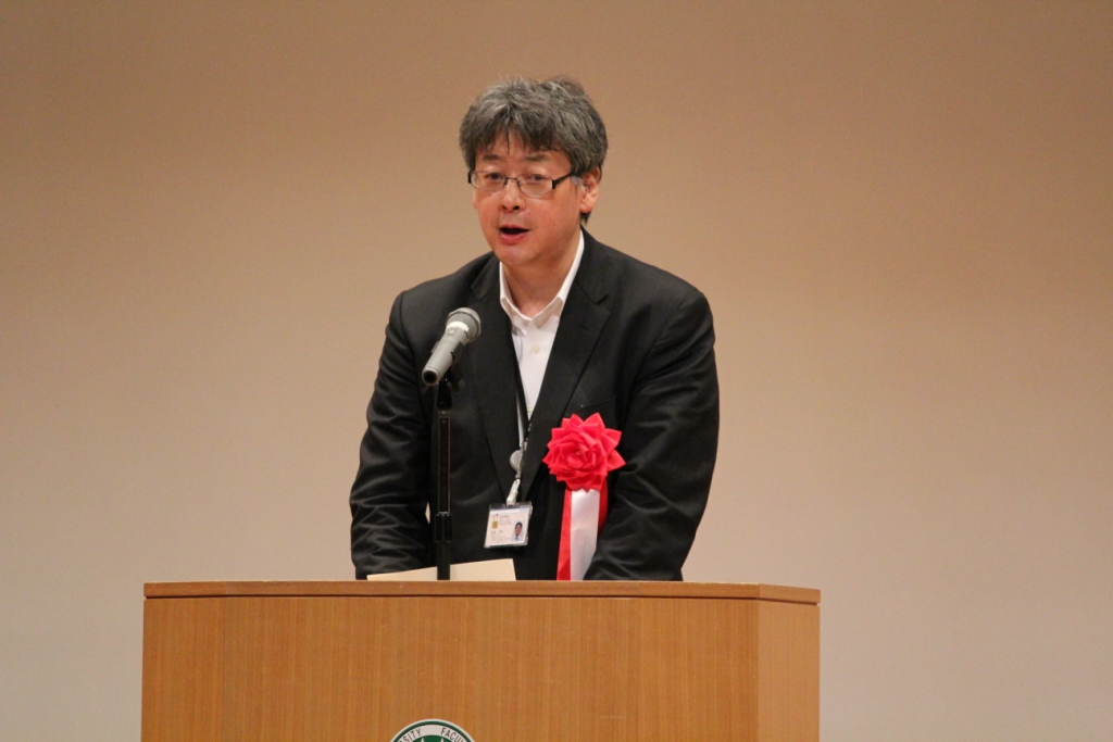 その後、小川洋福岡県知事、清水潔文部科学省事務次官、菅原郁郎経済産業省産業技術環境局長(進藤課長代読)、椎葉茂樹厚生労働省医政局研究開発振興課長からご来賓祝辞を賜りました。京都大学名誉教授 井村裕夫先生の記念講演の後、橋爪センター長から施設についての説明があり、 午後からは、イノベーションセンターの見学会が催されました。