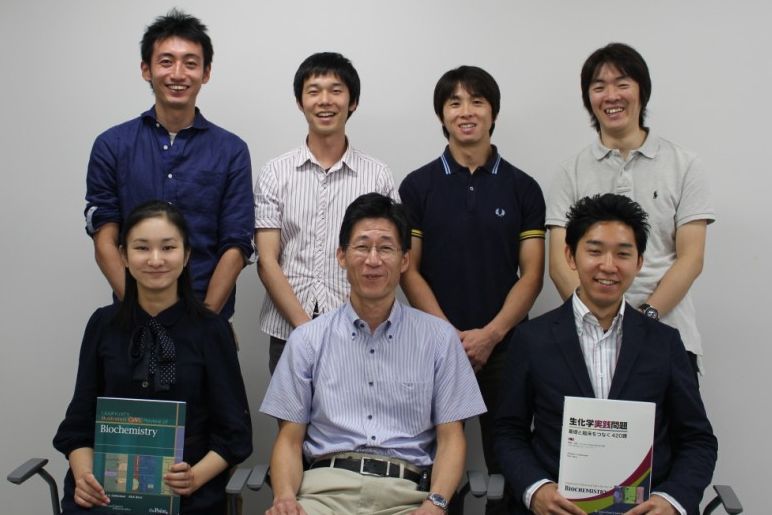この問題集の翻訳にあたっては、医学科6年生の6名が「九州大学医学部生化学ワーキンググループ」として下訳の翻訳を行いました。訳者一覧に6名全員の名前が記されており、在学中の学生の名が記された本が出版されるのは異例のことです。今回は監修をされた医化学分野 横溝岳彦教授と生化学ワーキンググループの前園明寛さん、山村聡さん、高森信吉さん、藤本侑里さん、佐藤暢晃さん、原田純さんにお話を伺いました。