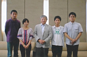 平成21年10月2日(金)にノーベル医学生理学賞受賞者の利根川進先生が、馬出キャンパスを訪問されました。まず、午前10時から、生体防御医学研究所1階セミナー室で行われた「Student Selected Seminar」において、大学院生・学部生を対象に熱い研究への思いを語られました。用意された30分間の質問時間が全く足りないほどの討論が行われました。次いで、午後2時半から九州大学医学部百年講堂中ホール1において、「理研BSI研究者と九大医系キャンパス脳研究者との懇話会‐利根川進先生をお迎えして‐」が開催されました。高柳涼一医学研究院長並びに理化学研究所BSIの利根川進所長のご挨拶に続き、理化学研究所BSI副センター長の田中啓治先生から「理化学研究所BSIでの脳科学研究の紹介」、医学研究院臨床神経生理学教授の飛松省三先生から「九州大学馬出キャンパスでの脳科学研究の紹介」と題した講演が行われました。引続き、(1) 日本の脳科学の将来、(2) 若手研究者の育成、(3) 理研と九大との連携等のテーマで、50名程度の参加者による全体討論が行われました。お世話役の精神病態医学教授の神庭重信先生の話では「利根川先生は冒頭では10分程度でお話しされましたが、総合討論は、利根川先生の独壇場でした。」とのことでした。中でも、今の良医を育てる医学部教育ではノーベル賞を狙える研究者は育たないので、研究者を育成する斬新なシステムが必要であるとの見解を述べられました。また、九大独自の取り組みである生命科学科の創設には大変興味を示され、今後の発展を期待したいとのコメントがありました。生命科学科の3年生からも4名が参加し、利根川先生とのスナップ写真撮影に感激していました。午前中の「Student Selected Seminar」に参加した学生の感想文は