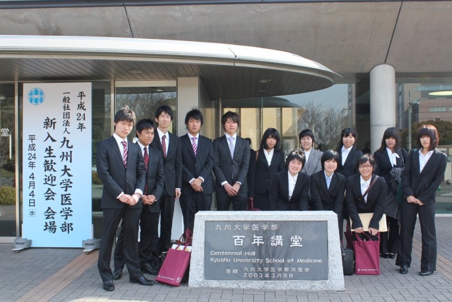 ![]() [平成24年度生命科学科新入生 医学部百年講堂の入口で] |