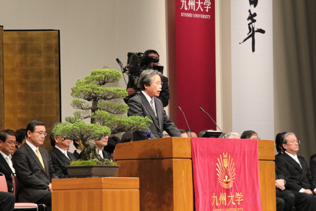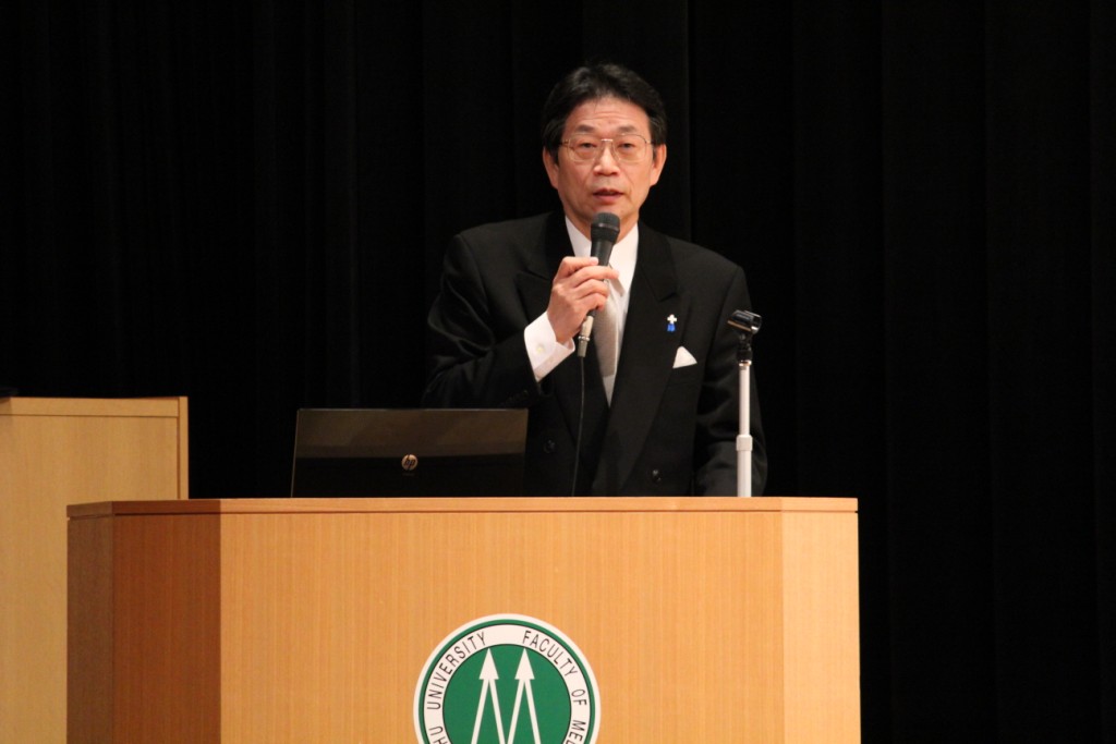 有川総長からの告辞では、我が国は、昨年3月に発生した東日本大震災並びにその後の原子力発電所の事故に伴う未曾有の困難な時期にあり、新入生の皆さんには直面する多くの課題について、専門家を目指す若者として社会に対して何をなすべきかを意識した大学生生活を送って欲しいとのメッセージがありました。また「秋入学」が話題になっているが、今は国際化へ向けて社会と大学が連携して改革を進める時期に当たり、主体的に学習に取組む(active learner)ようにと求められました。