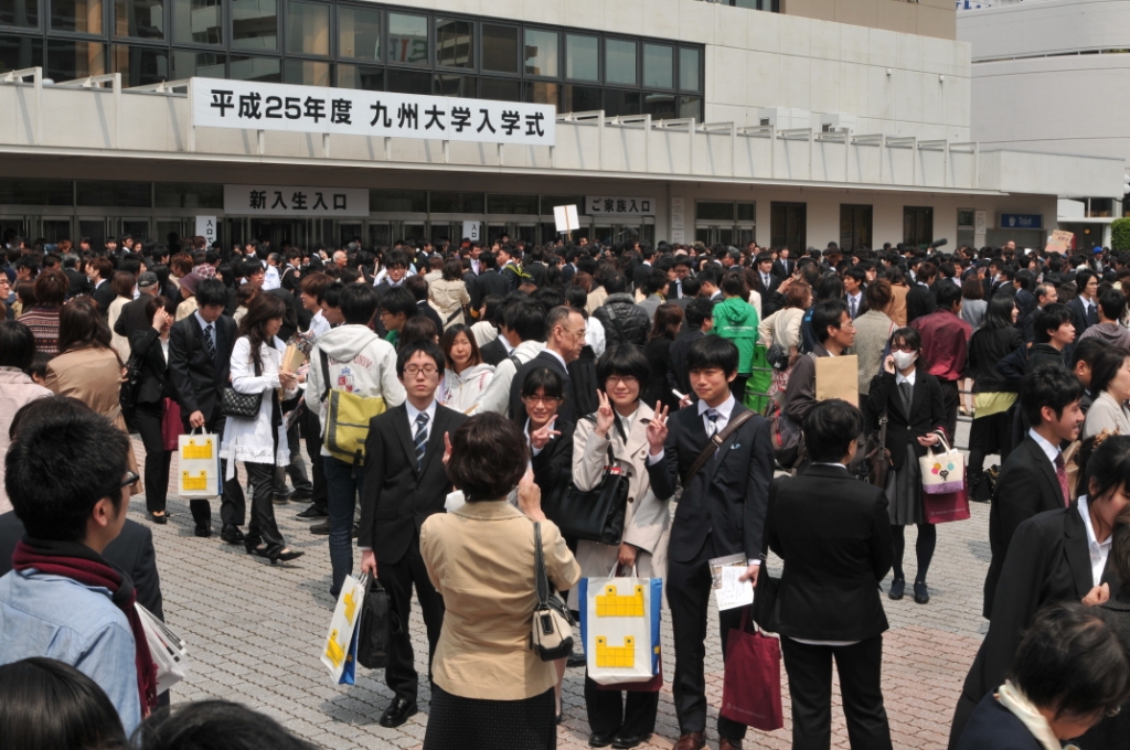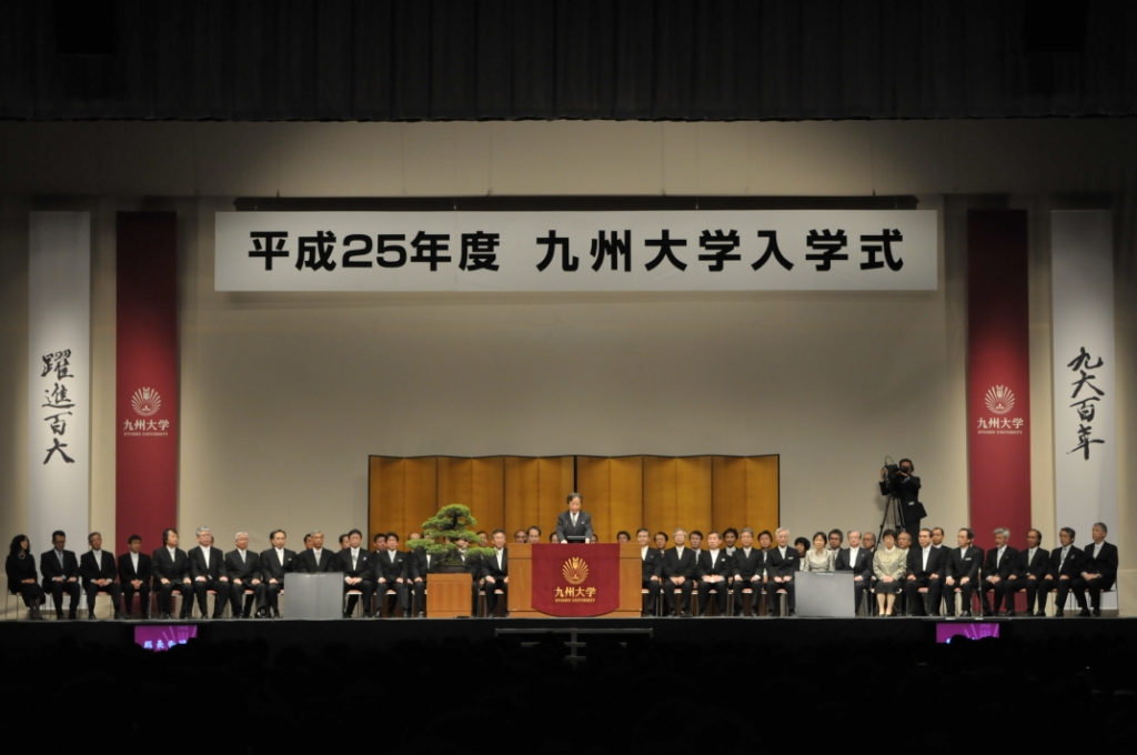 平成25年4月9日(火)9時50分から、福岡国際センターにおいて平成25年度の入学式が行われました。医学部医学科114名(男:101名、女:13名)、生命科学科15名(男:6名、女:9名)を含む、全部で11の学部と21世紀プログラムの2,687名の新入生が、九州大学に入学しました。