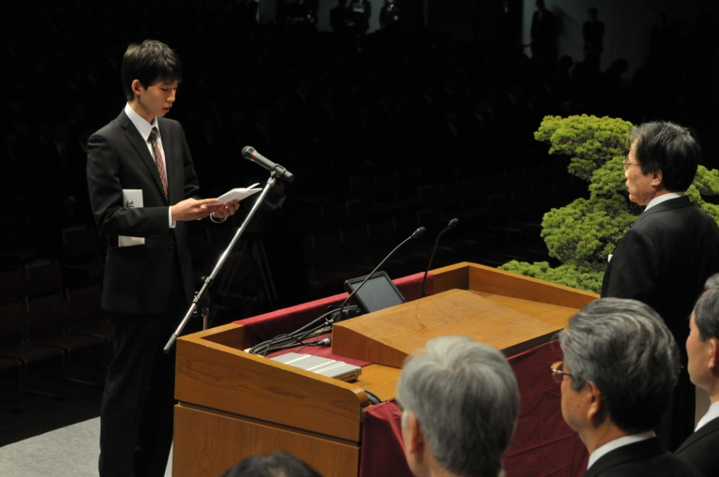 その後、新入生総代の芸術工学部 横山恵大さんが誓詞朗読を行いました。