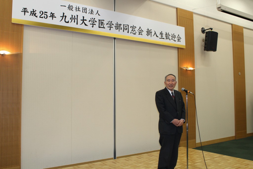 片野光男医学部長は、挨拶で「毎日、志を高く持って身を整え敬いを持って、医系キャンパスの門をくぐってきて欲しい。同時に恵まれた環境を多いに役立てて欲しい。そして、心の時間軸を長めに調節して欲しい。そうすれば 悩みというものは小さくなるし、明日の目標というものが見えてくるし、また同時に大きな志がわいてくる。そして多いに友と語らい、笑い、泣いて、汗を流し、より大きな社会貢献が出来るよう心身を鍛えていって欲しい。」という新入生へのお祝いのメッセージを贈りました。