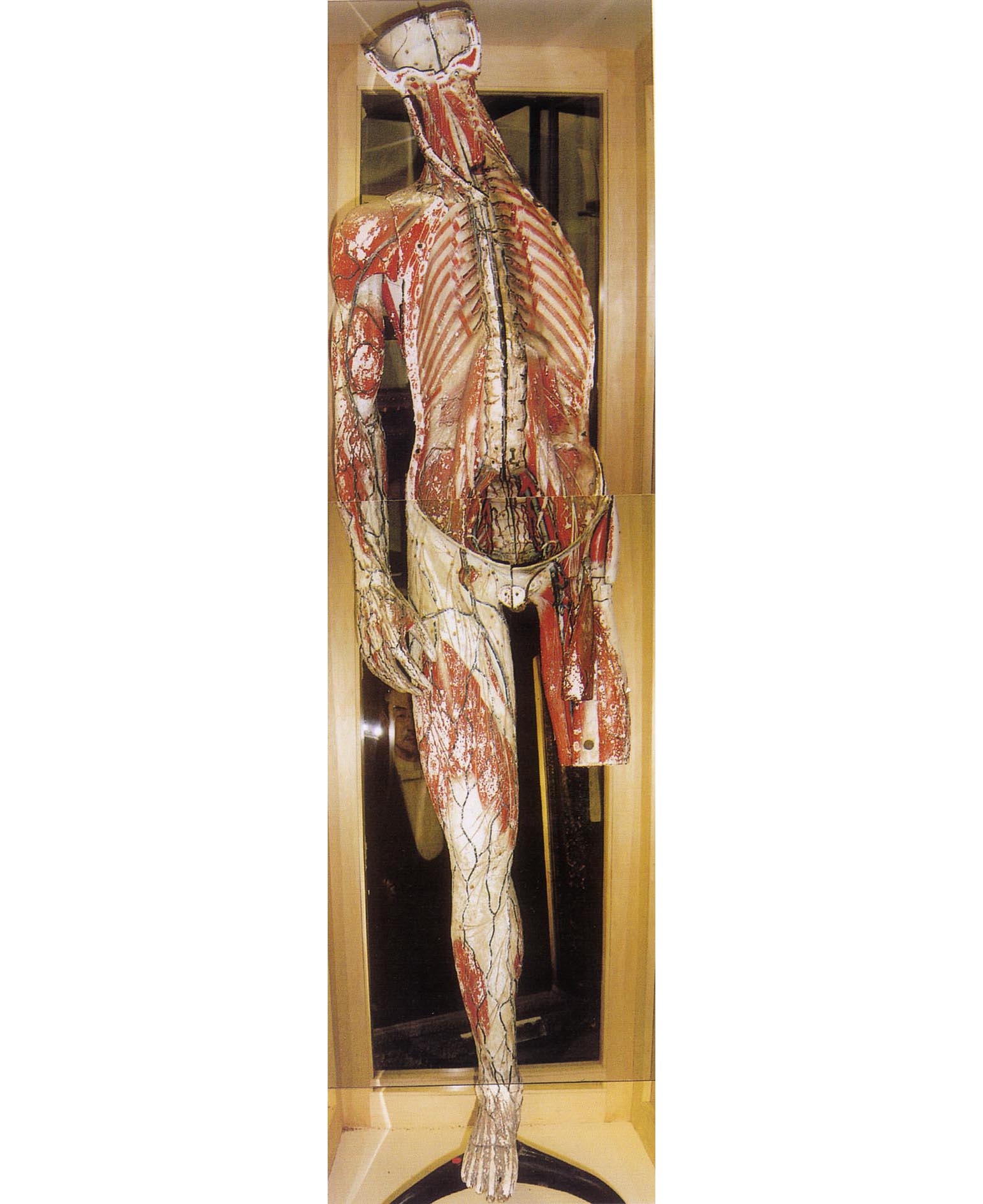 ▽九大医学部解剖学教室に保存され ている紙製のキュンストレーキ(人体模型)。