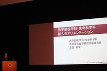 学部長挨拶の後、教務委員会副委員長 吉田素文教授(医学教育学講座)から医学科、生命科学科の専攻教育科目共通事項について説明があり、その後、医学科、生命科学科に分かれ、それぞれの履修解説が行われました。