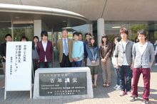 ![]() 康生命科学科長と平成26年度生命科学科新入生 |
