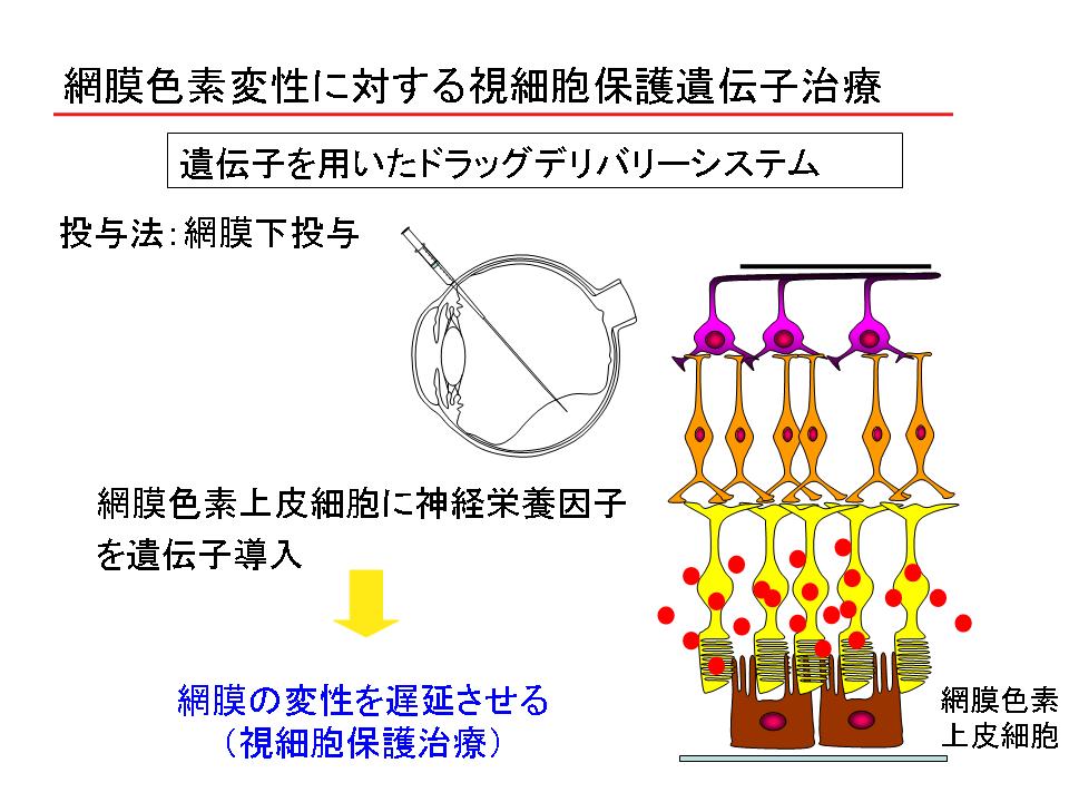 医学研究院の石橋達朗教授(眼科学)らは、このほど視細胞を保護するタンパク質(神経栄養因子)の遺伝子を投与して、視細胞の喪失を抑えることで視力の低下を防ぐ方法を開発した。この病気へのレンチウイルスベクターを用いた遺伝子治療は世界で初めて。学内の倫理委員会の承認を得たため、年内にも厚生科学審議会に実施申請する。