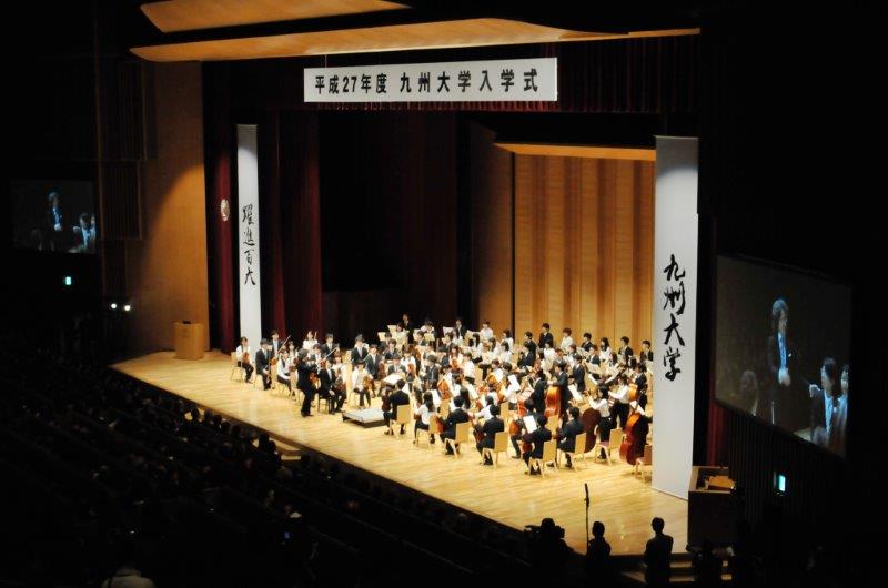 入学式に先立ち、九大フィルハーモニーオーケストラによる祝賀演奏がありました。