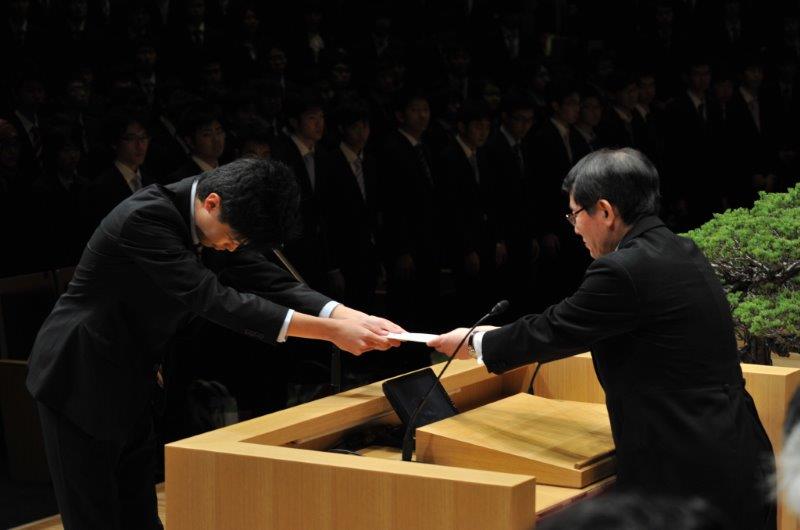 その後、新入生総代の農学部 北原 圭一郎(きたはら けいいちろう)さんが、「私達は本学教育の趣旨を体して,自立の精神を重んじ,学術を極めるとともに,自ら人格の陶冶に努め,社会の期待に沿うことを誓います」と誓詞を朗読しました。そして、来賓の駐日オーストラリア特命全権大使のブルース・ミラー閣下より,新入生を激励する祝辞をいただきました。
