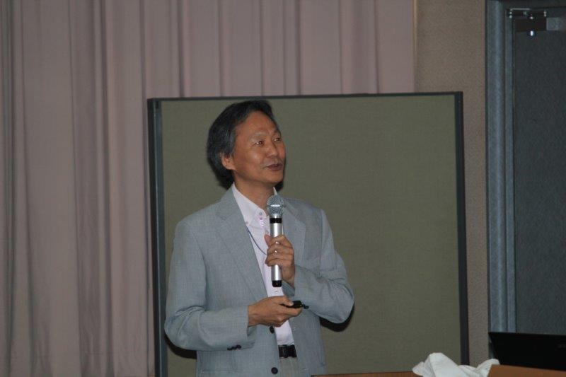 説明会では、はじめに康東天生命科学科長から、生命科学科の概要についての紹介・挨拶がありました。康生命科学科長は、生命科学が日本の産業の柱になることが期待されている話をされ、当学科の特徴ある教育システムについて、専門であるミトコンドリアの研究の話も交え話されました。