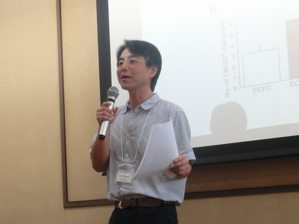 14:00から基盤幹細胞学分野 中島教授の開会挨拶に始まり、続いて住本研究院長の開会挨拶の後、研究発表が行われました。今回はstem cellをメインテーマとし、釜山大学5名、九州大学5名の若手研究者が交互に研究発表を行いました。