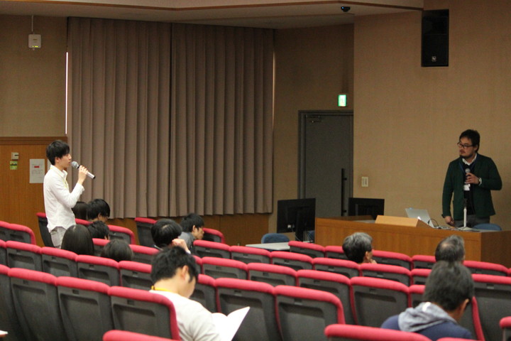 また、その後は基礎研究A棟第2講義室にて、学生のみでのパネルディスカッションを行い、様々な経緯を辿られた先輩方に、学部生を中心に集めた質問に答えて頂き、日頃聞くことができない貴重なご意見、お話を拝聴でき、とても熱い会になったと思います。