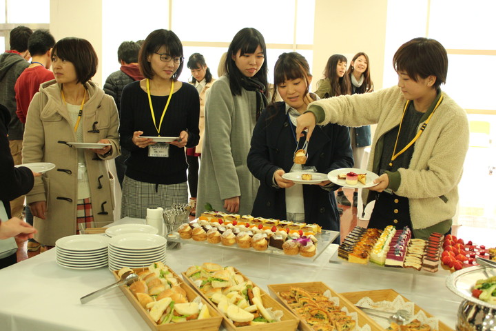 その後の企画と致しまして、コラボステーションⅡ 1階コミュニティラウンジにて立食パーティーを行いました。非常に多くの先生方にご寄附を始めとするご協力を賜り、当初の予定よりも遥かに豪華な祝賀会を開くことができました。