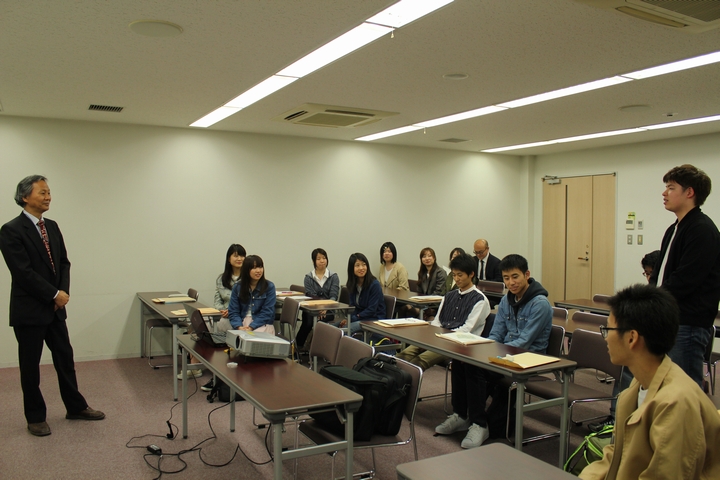 生命科学科の履修解説は2階の会議室で行われました。康生命科学科長より歓迎の挨拶の後、引き続き履修解説がなされました。その後、新入生自己紹介があり、それぞれが出身地や当学科への志望理由などを話しました。
