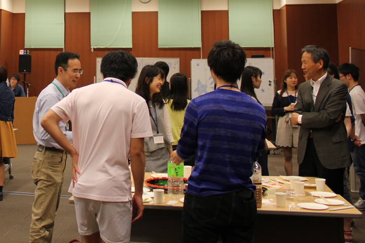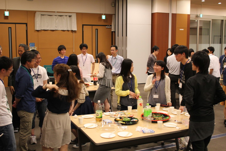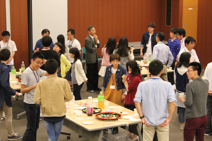 歓談の途中では各新入生の自己紹介の時間も設けられており、終始、和やかな雰囲気の交流となりました。新入生達も先輩や教員と話すことができ、とても良い刺激になっているようでした。最後には全員参加のゲームがあり、大変な盛り上がりの中、散会となりました。