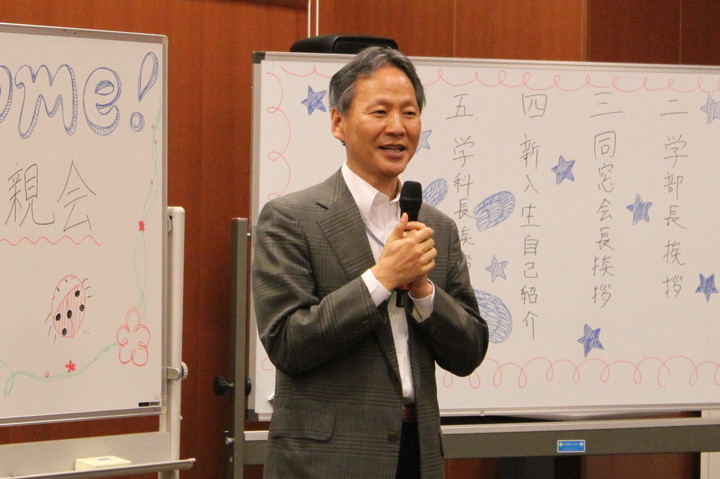 懇親会は、3年生のクラス代表委員を中心とした学生によって企画・進行されました。会の始めには、住本医学部長の挨拶がありました。その後、康生命科学科長の乾杯の発声で学生達と教職員との交流が始まりました。