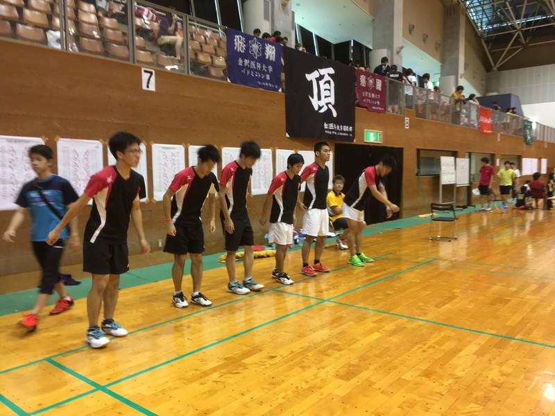 九州大学の男子団体は2年前に主力だった先輩たちが卒業し、去年の西医体から新たなメンバーで臨んできました。それぞれが工夫を凝らし、切磋琢磨しながら練習に取り組む中で、団体のレベルアップを感じつつも、大会ではなかなか成績を残すことができていませんでした。特に今年度の九州・山口医科学生大会(通称:九山)の団体では、勝つべき相手に勝つことができず、初戦のリーグ戦で敗退という結果に悔し涙を飲みました。しかし、この悔しさを忘れず、「次の西医体こそは…」という決意を胸に、勝ちにこだわったストイックな練習で自分のプレイを見直し磨き続け、より確かな技術と自信を持って西医体に挑みました。