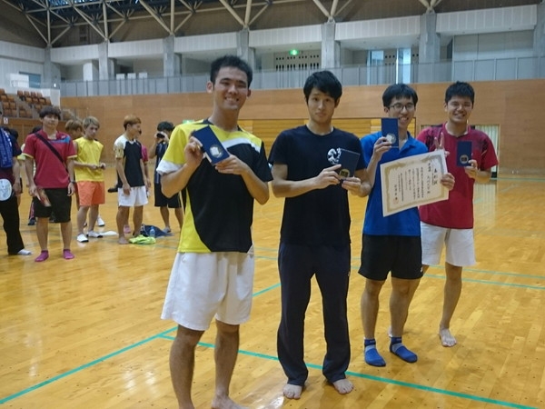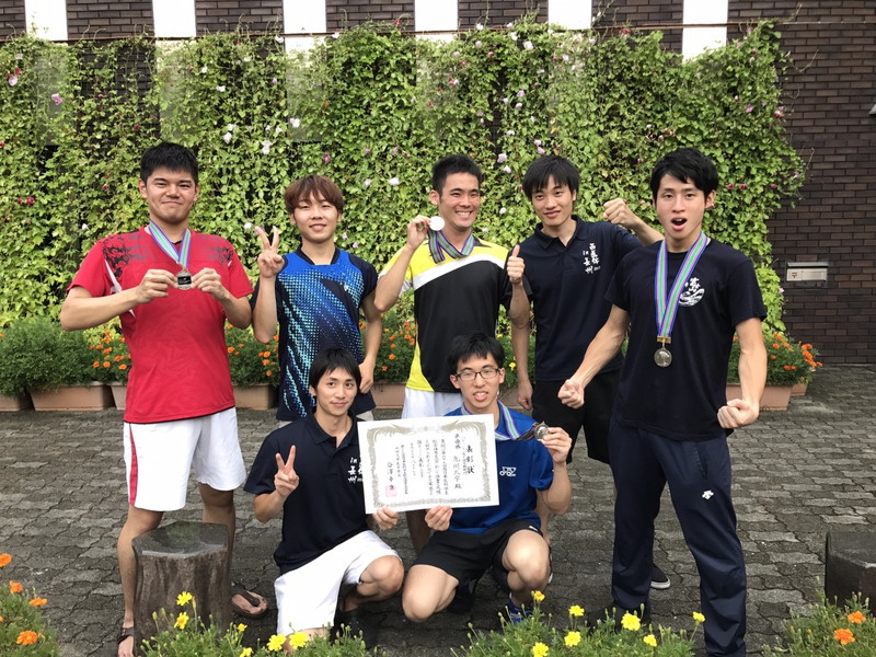試合本番では、部員全員でコートの周りを囲んでの応援とアドバイスで盛り上げ、ダブルス、シングルスどの試合も1球1球諦めない粘り強い気迫溢れるプレイでそれぞれが役割を全うしました。その結果、終始よい雰囲気で団体戦を戦い抜くことができ、1つの関門と思われた3回戦を3-0のストレートで勝利すると、その勢いのまま準々決勝、準決勝と勝ち進んでいき、『九州大学』というチームで掴み取った準優勝でした。